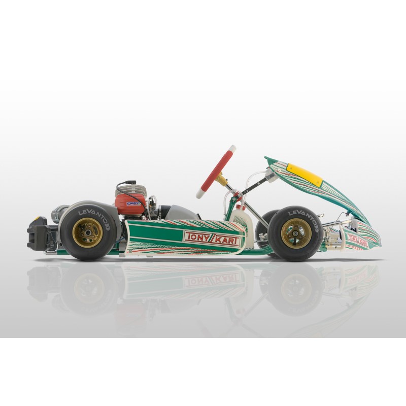 In Bezug auf Ästhetik / Design wurde das Aufkleber-Kit jedoch insgesamt überarbeitet, jetzt eindeutig inspiriert von Racer 401R, dem neuen Topmodell der Tony Kart Serie.