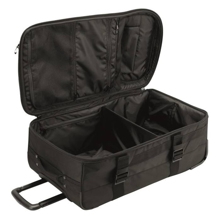 Les roulettes résistantes et la poignée vous permettent de le transporter sans effort en le faisant rouler et les doubles poignées sur le dessus du sac vous permettent néanmoins de le transporter également à la main au besoin.